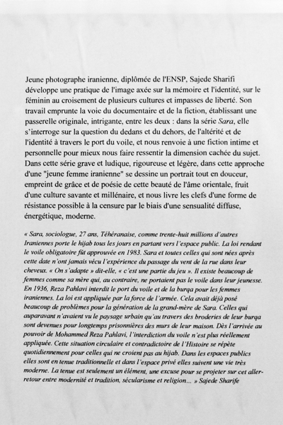 “SARA” , Vue d’exposition – “Échanges de vues”, Photographic conversation of Olympus, Gallery Les Filles du Calvaire, Paris , 2015-2016