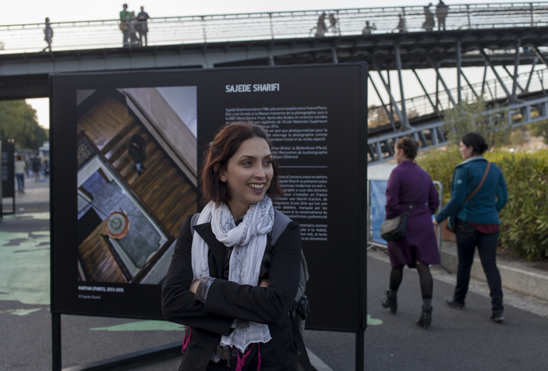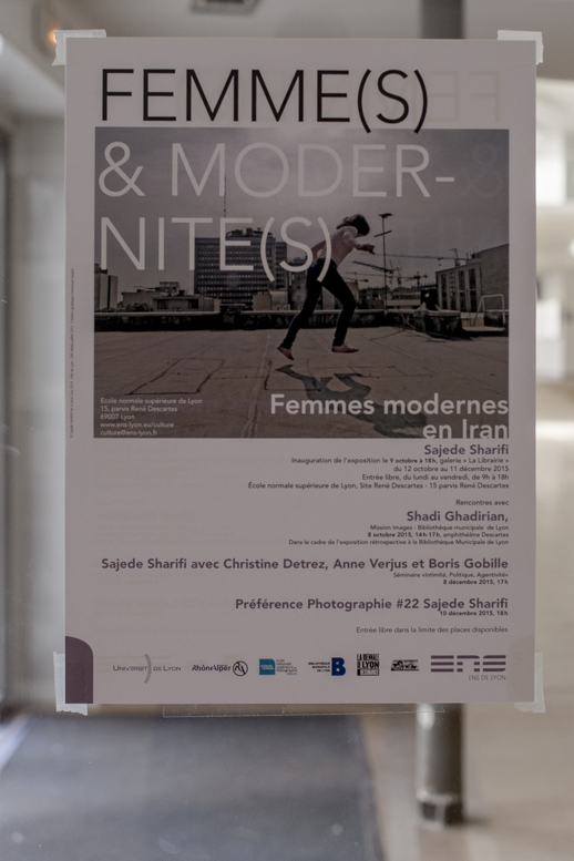 Visite de l’exposition “Femmes et Modernité” par Shadi Ghadirian et Anihita Ghabaian Etehadieh en preview le 8 octobre 2015, Biennale d’art contemporain, Galerie La Librairie (ENS), Lyon.