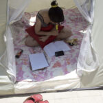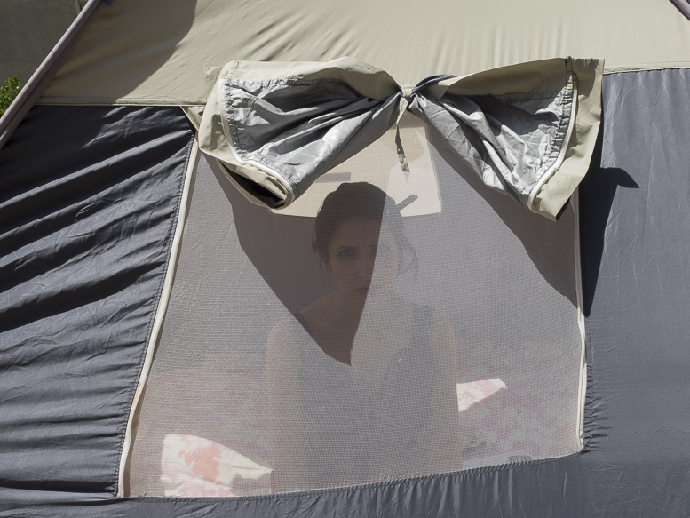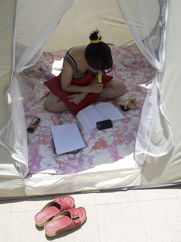 Elle travaille dans une tente quand elle veut profiter du beau temps de sa terrasse.