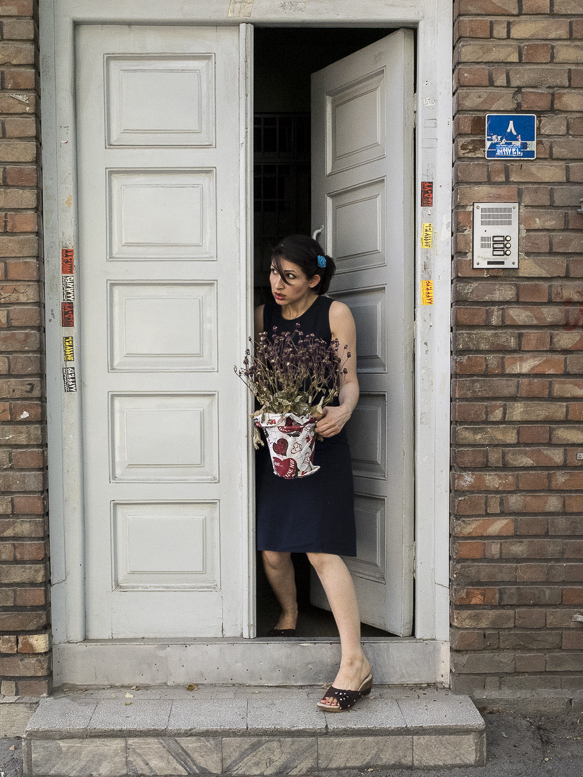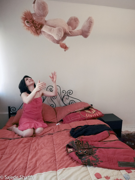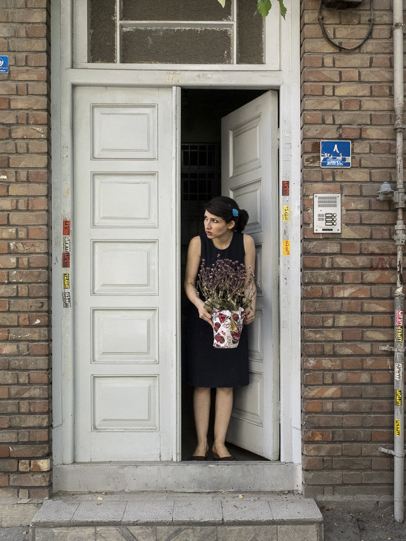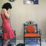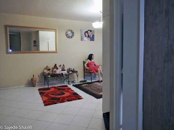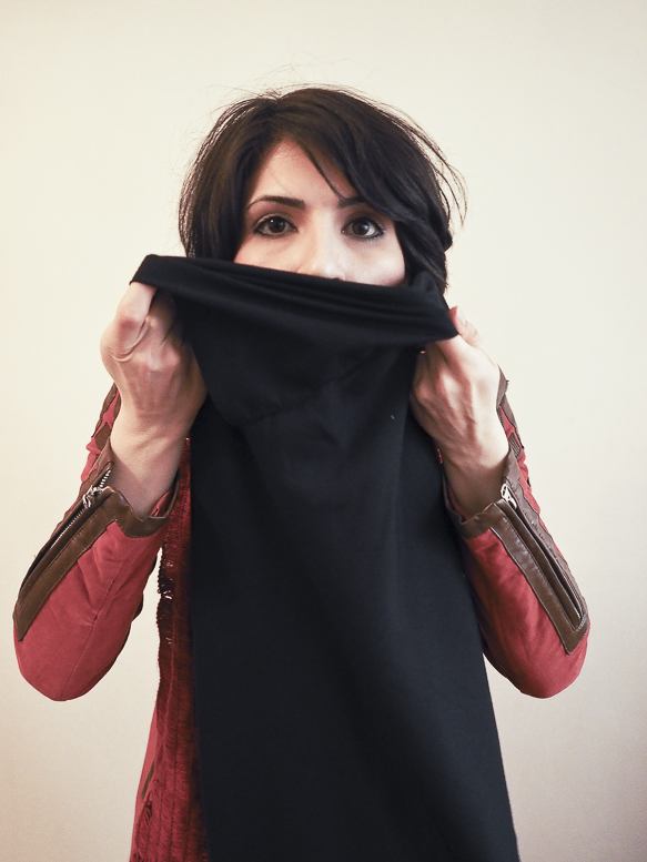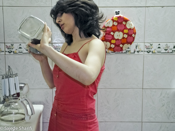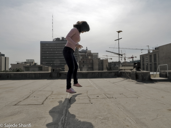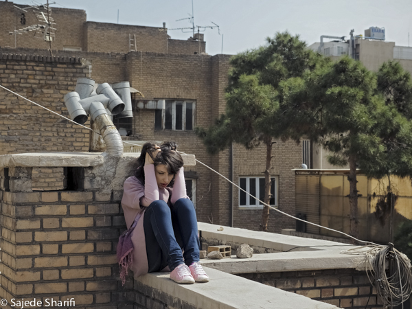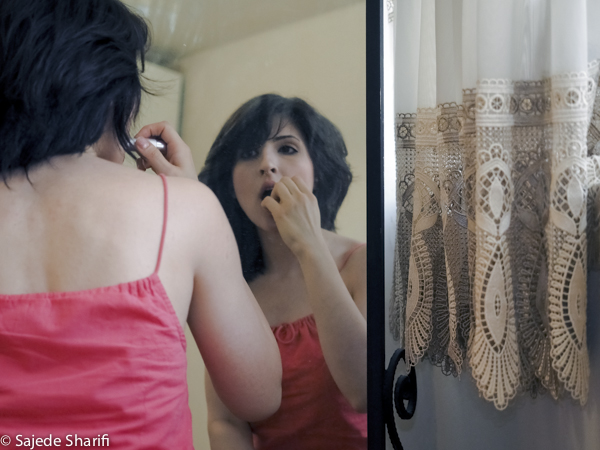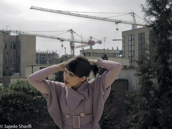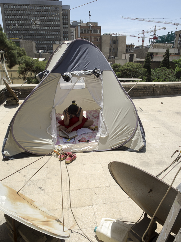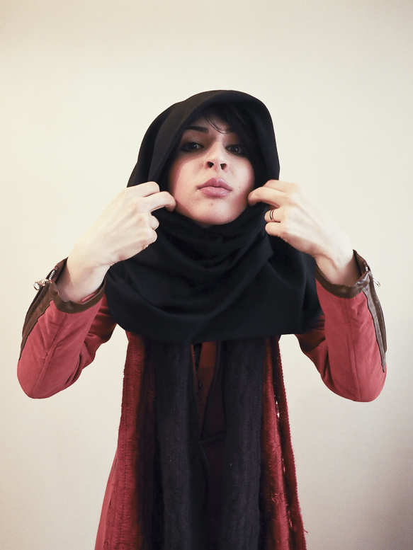 La loi rendant le voile obligatoire fût approuvée le 2 novembre 1983. Sara et toutes celles qui sont nées après cette date n’ont jamais vécu l’expérience du passage du vent de la rue dans leur cheveux.Il y a encore beaucoup de femmes comme sa mère qui, au contraire, ne portaient pas le voile dans leur jeunesse.Le 8 janvier 1936, Reza Pahlavi interdit le port du voile et de la burqa pour les femmes iraniennes. La loi est appliquée par la force de l’armée et avait posé beaucoup de problèmes pour la génération de la grand-mère de Sara. Celles qui auparavant n’avaient vu le paysage urbain qu’au travers des broderies de leur burqa sont devenues pour longtemps prisonnières des murs de leur maison. Dès l’arrivée au pouvoir de son fils Mohammed Reza Pahlavi, l’interdiction du voile n’est plus réellement appliquée.Cette situation circulaire et contradictoire de l’Histoire se répète quotidiennement pour celles qui ne croient pas au hijab. Dans les espaces publics elles sont en tenue traditionnelle et dans l’espace privé elles suivent une vie très moderne. La tenue est seulement un élément, une excuse pour se projeter sur cet aller-retour entre modernité et tradition, sécularisme et religion…Dans ces scènes Sara joue son quotidien dans les espaces intermédiaires entre ces deux facettes de la vie iranienne.