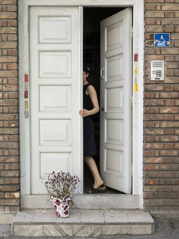 Elle surveille d’abord la rue si elle veut ouvrir la porte sans hijab.